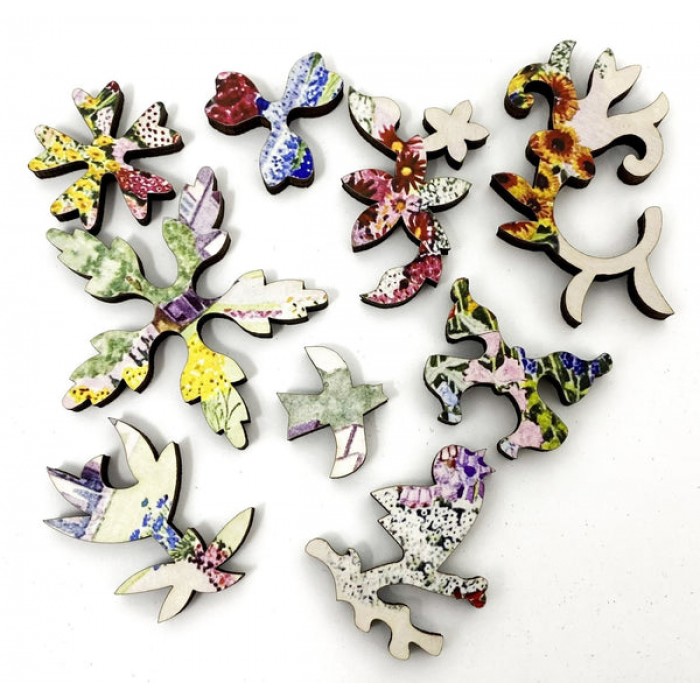 The perfect gift for jigsaw puzzlers, fine art enthusiasts, fans of Art Deco, this traditional adult mini wooden jigsaw puzzle can be done time and again. Our mini wooden jigsaw puzzle artists have included many flower shaped whimsy puzzle pieces that match the theme of the painting, and we have integrated them in ways that will delight and surprise you as you put the puzzle together.