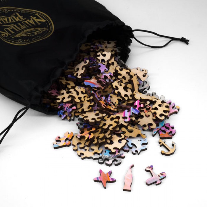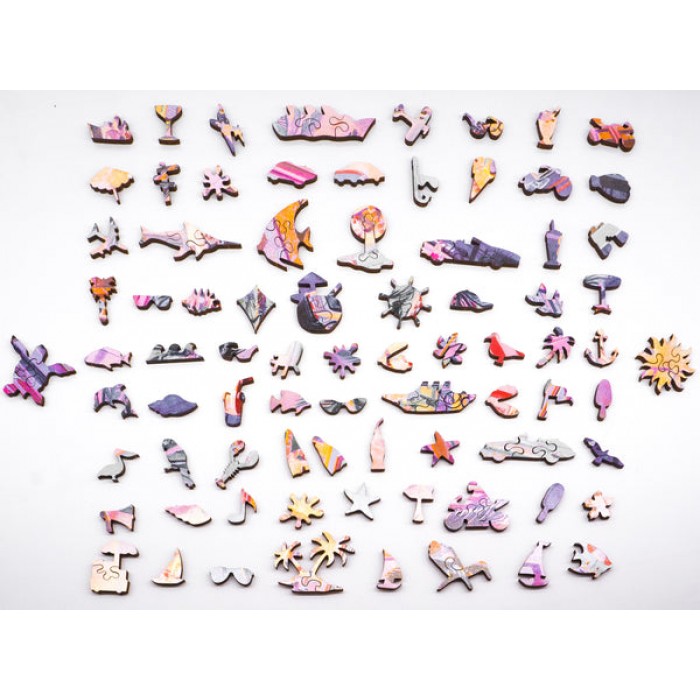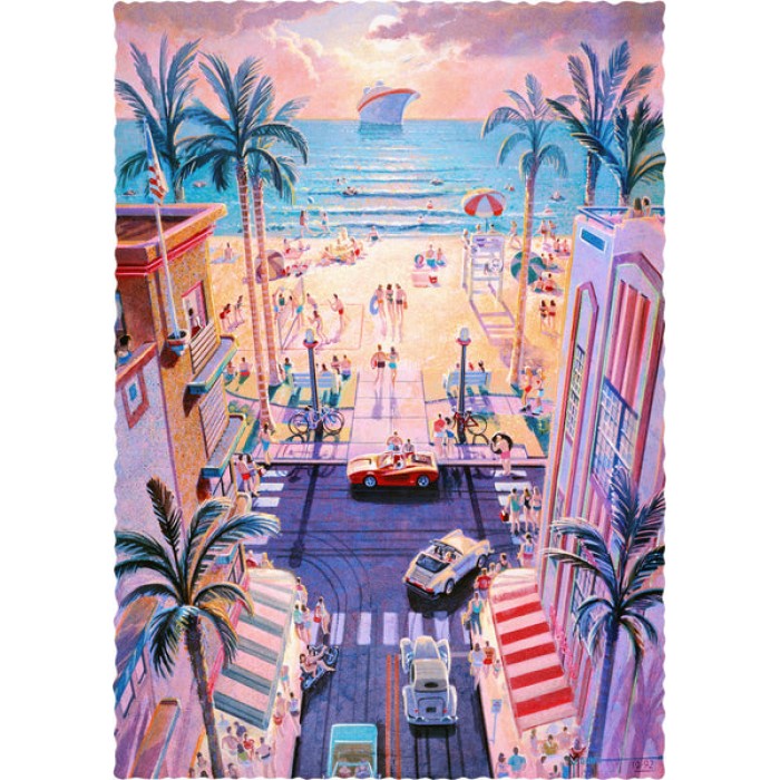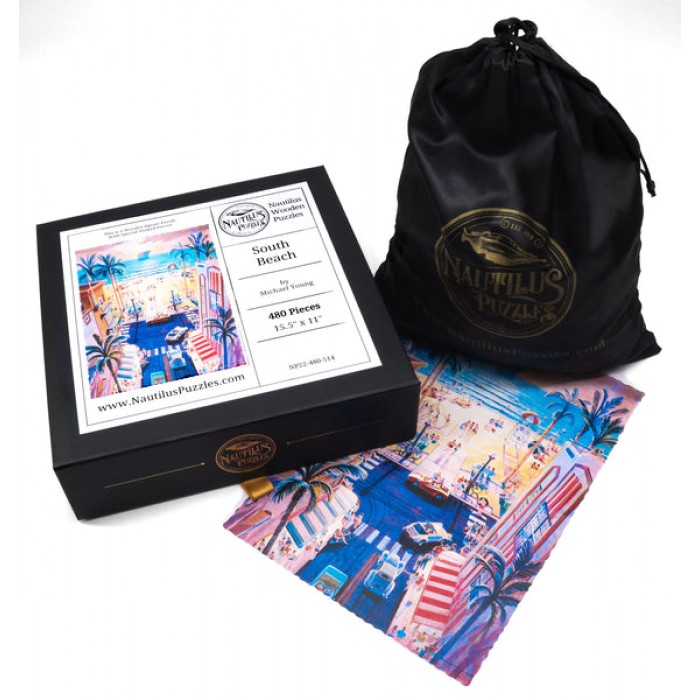 The perfect gift for wooden jigsaw puzzlers, classic car enthusiasts, Art Deco fans and Miami, Florida lovers, this traditional adult wooden jigsaw puzzle can be done time and again. Our wooden jigsaw puzzle artists have included many shaped whimsy wooden jigsaw puzzle pieces that match the theme of the painting, and we have integrated them in ways that will delight and surprise you as you put the wooden jigsaw puzzle together.