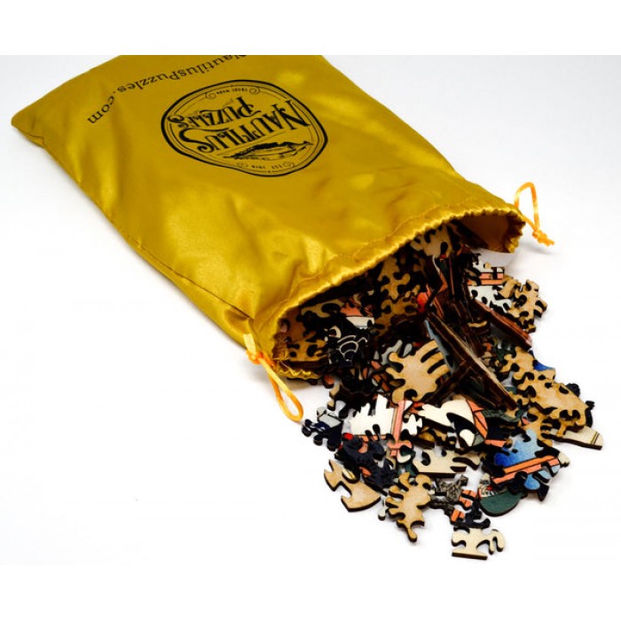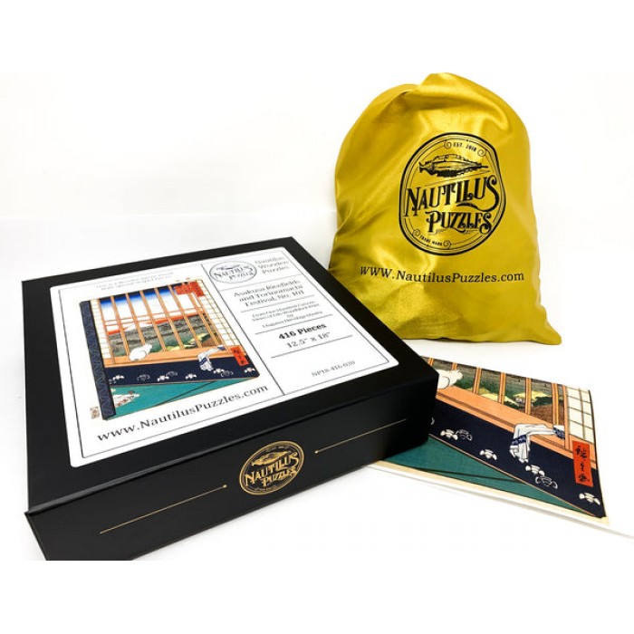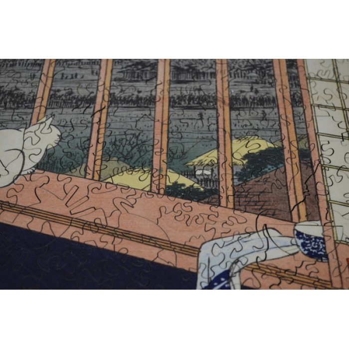The perfect gift for adult wooden puzzlers, Japanese Woodblock enthusiasts, and Asian Art fans, this traditional adult wooden puzzle can be done time and again. Our puzzle artists have included many shaped whimsy adult wooden puzzle pieces that match the theme of the painting, and we have integrated them in ways that will delight and surprise you as you put the adult wooden puzzle together. Kids also enjoy this one!