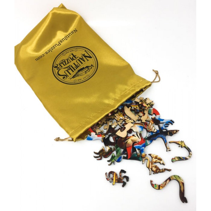 The perfect gift for wooden jigsaw puzzlers, Asian Art enthusiasts, and Japanese Puzzle fans, this traditional adult jigsaw can be done time and again. Our wooden jigsaw puzzle artists have included many dragon shaped whimsy puzzle pieces that match the theme of the painting, and we have integrated them in ways that will delight and surprise you as you put the wooden jigsaw puzzle together.