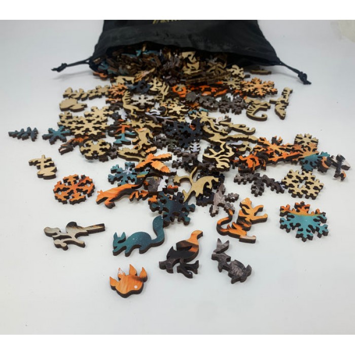 The perfect gift for wooden jigsaw puzzlers, Animal lovers and cat fans, this traditional adult wooden jigsaw puzzle can be done time and again. Our wooden jigsaw puzzle artists have included many shaped whimsy wooden jigsaw puzzle pieces that match the theme of the image, and we have integrated them in ways that will delight and surprise you as you put the wooden jigsaw puzzle together.