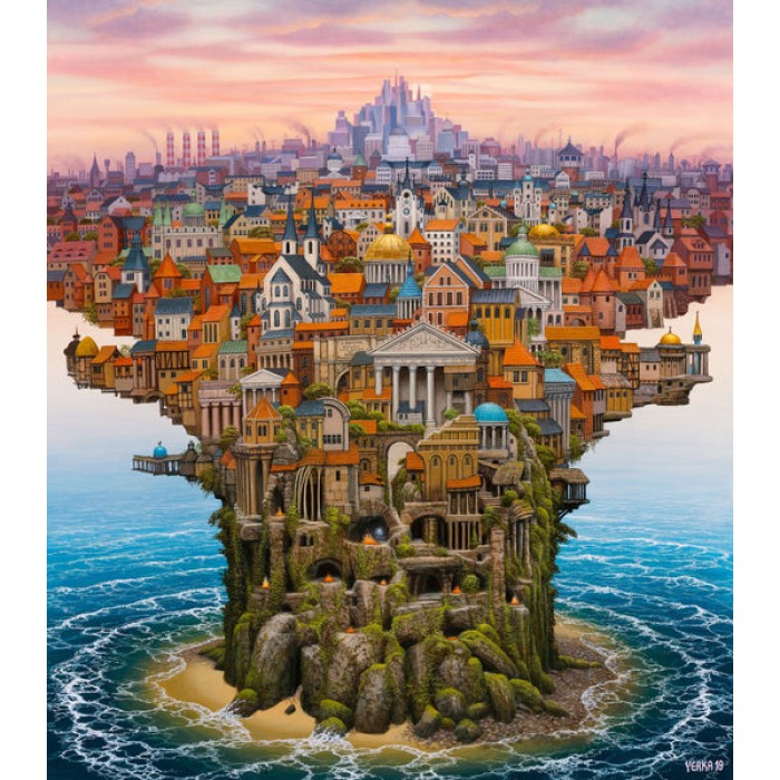 The perfect gift for woorden jigsaw puzzlers and Jacek Yerka enthusiasts, this traditional adult wooden jigsaw puzzle can be done time and again. Our wooden jigsaw puzzle artists have included many shaped whimsy wooden jigsaw puzzle pieces that match the theme of the image, and we have integrated them in ways that will delight and surprise you as you put the wooden jigsaw puzzle together.