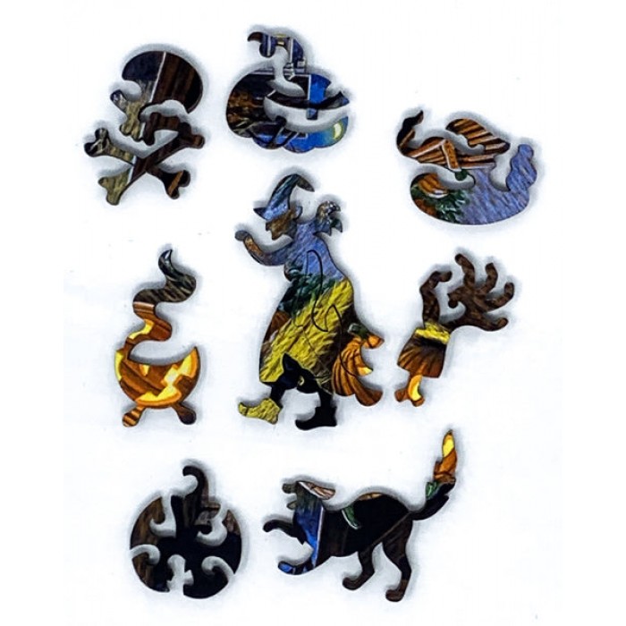 The perfect gift or stocking-stuffer for any jigsaw puzzler, this traditional mini Halloween jigsaw puzzle can be done time and again. Our puzzle artists have included many Halloween-inspired shaped whimsy mini Halloween jigsaw puzzle pieces that match the theme of the painting, and we have integrated them in ways that will delight and surprise you as you put the mini Halloween jigsaw puzzle together.