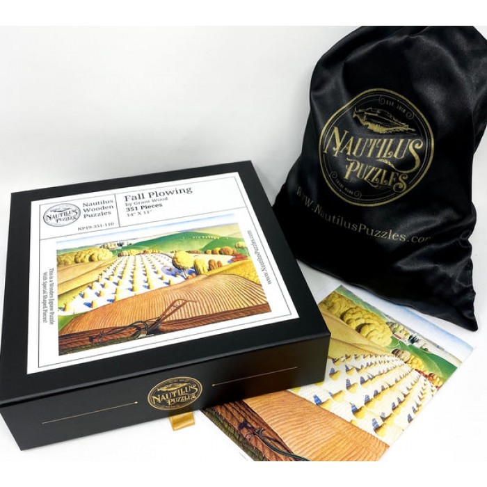 The perfect gift for fall wooden jigsaw puzzlers, fine art enthusiasts, and fans of rural landscapes, this traditional adult fall wooden jigsaw puzzle can be done time and again. Our fall wooden jigsaw puzzle artists have included many farm-themed shaped whimsy puzzle pieces that match the subject of the painting, and we have integrated them in ways that will delight and surprise you as you put the puzzle together.