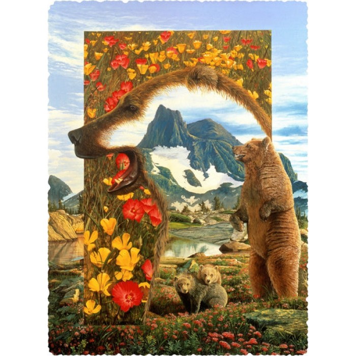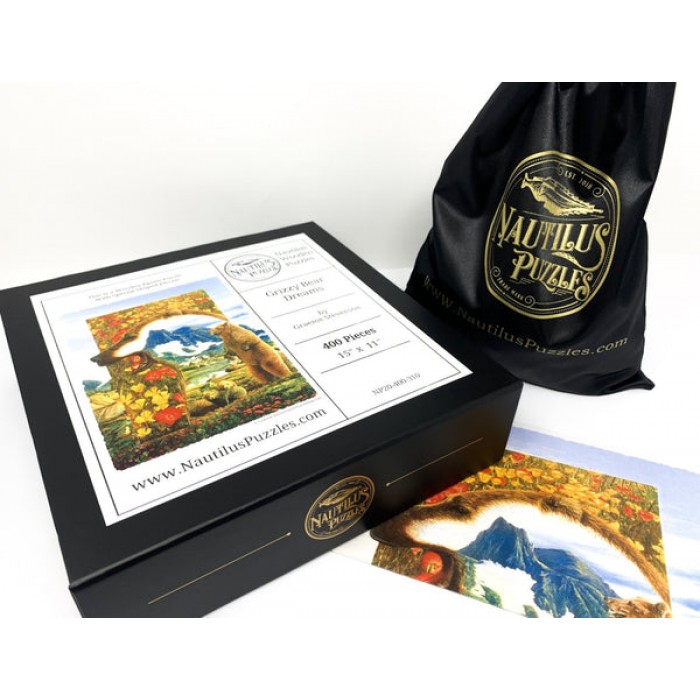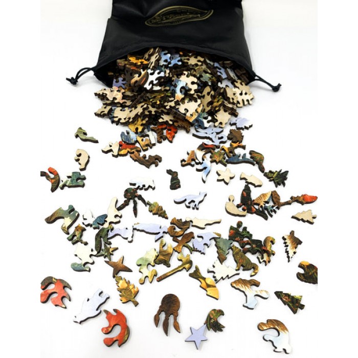 The perfect gift for wooden jigsaw puzzlers and Grizzly Bear fans, this traditional adult wooden jigsaw puzzle can be done time and again. Our wooden jigsaw puzzle artists have included many bear shaped whimsy puzzle pieces that match the subject of the image, and we have integrated them in ways that will delight and surprise you as you put the wooden jigsaw puzzle together.