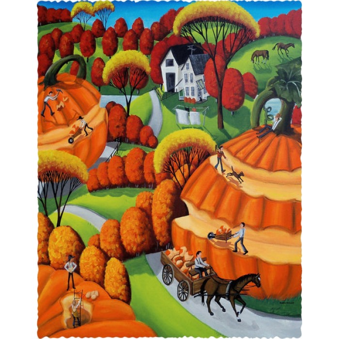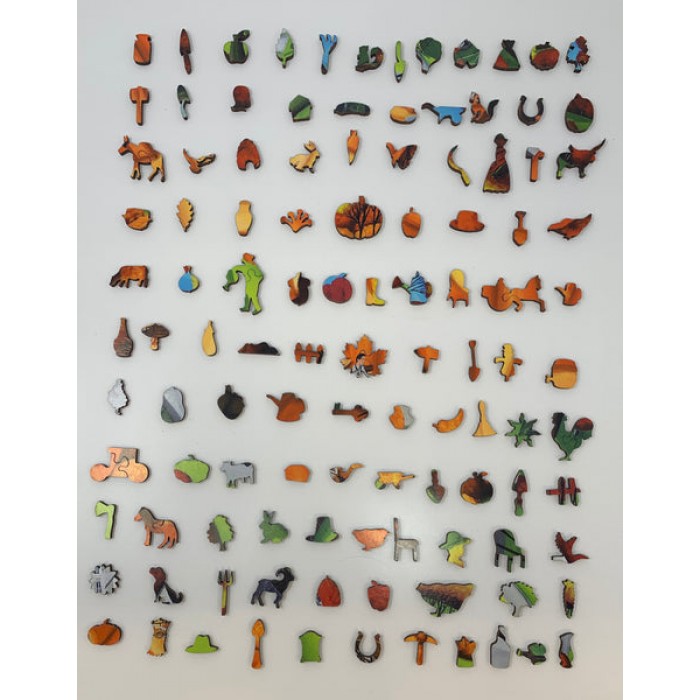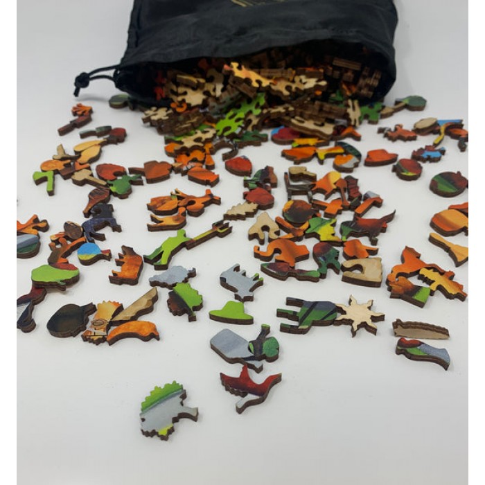 The perfect gift for autumn wooden jigsaw puzzlers, and Autumn lovers, this traditional adult autumn wooden jigsaw puzzle can be done time and again. Our autumn wooden jigsaw puzzle artists have included many shaped whimsy autumn wooden jigsaw puzzle pieces that match the subject of the painting, and we have integrated them in ways that will delight and surprise you as you put the autumn wooden jigsaw puzzle together.