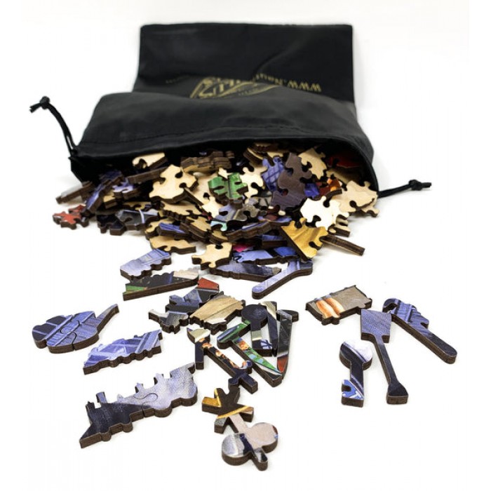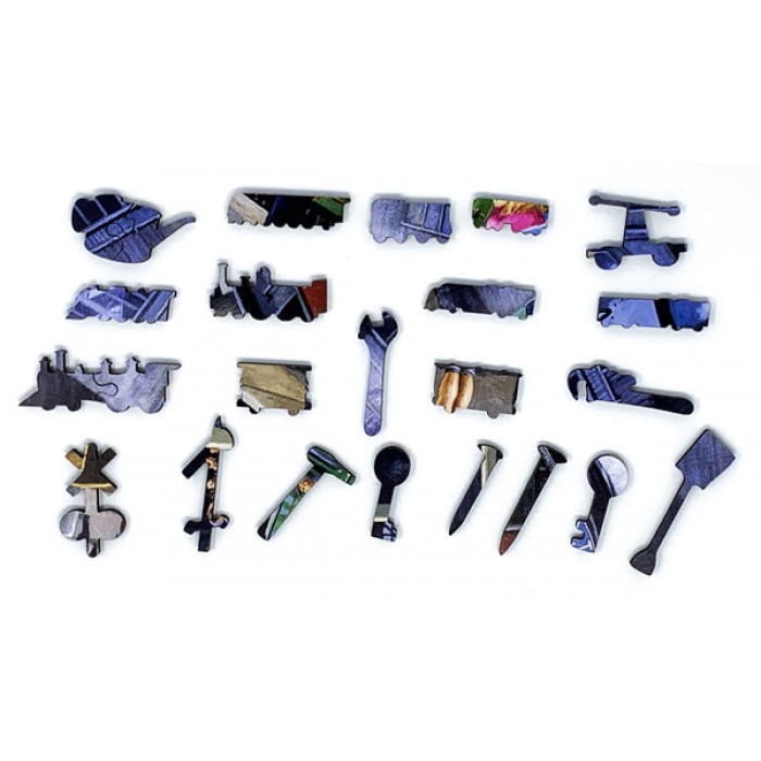 The perfect gift for wooden jigsaw puzzlers and train enthusiasts, this traditional adult jigsaw can be done time and again. Our wooden jigsaw puzzle artists have included many train-themed, shaped whimsy puzzle pieces that match the subject of the painting, and we have integrated them in ways that will delight and surprise you as you put the wooden jigsaw puzzle together.