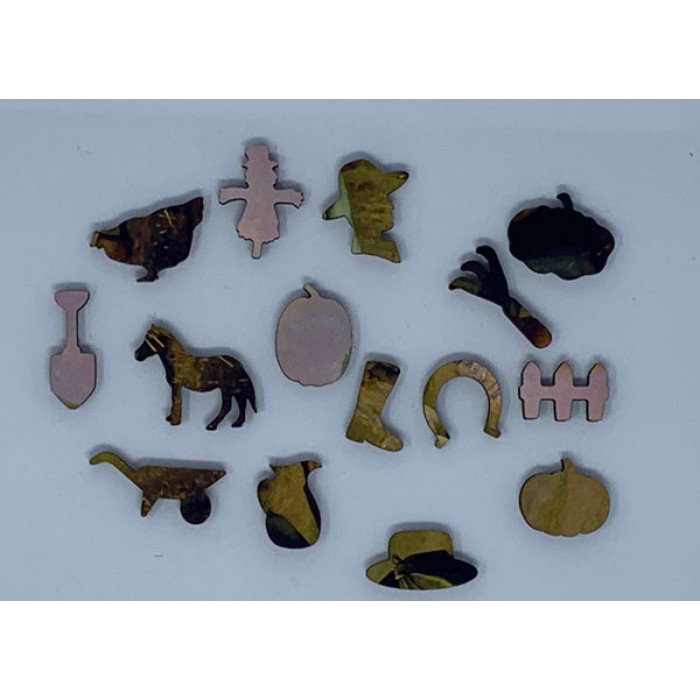 The perfect gift or stocking-stuffer for any mini autumn wooden jigsaw puzzler, this traditional mini autumn wooden jigsaw puzzle can be done time and again. Our puzzle artists have included many Autumn-inspired shaped whimsy puzzle pieces that match the theme of the painting, and we have integrated them in ways that will delight and surprise you as you put the autumn wooden jigsaw puzzle together.