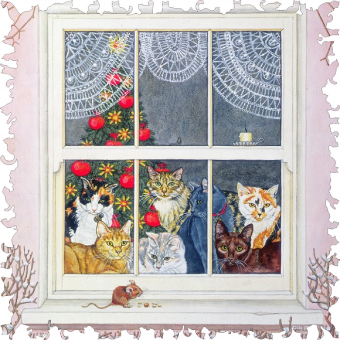 One common trait shared by all cats is their love of a good window perch. They will sit for hours surveying the landscape, and these friendly felines are no exception as they hang out enjoying the winter view, and their mousy entertainment.