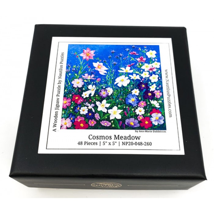 Cosmos Meadow shows a field of colorful flowers with a vibrant blue sky as a backdrop on a beautiful Summer Day. This mini puzzle would make a great vacation activity or birthday gift.