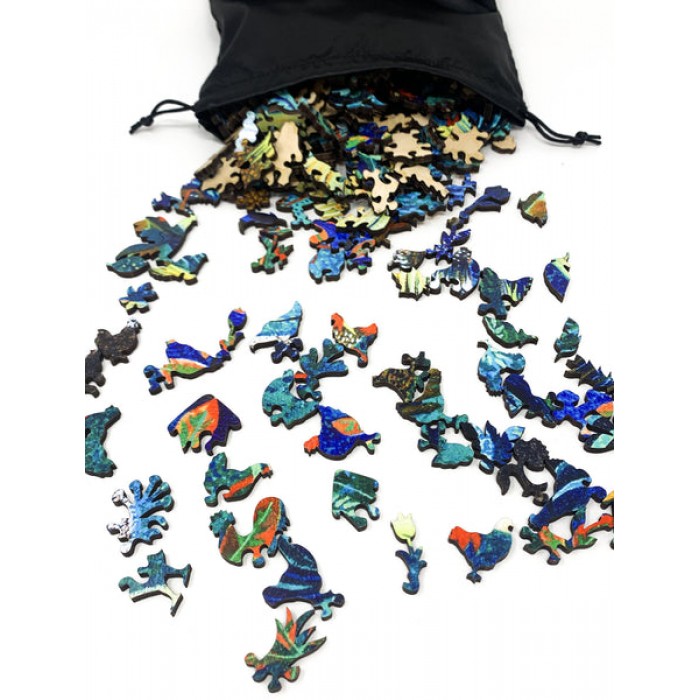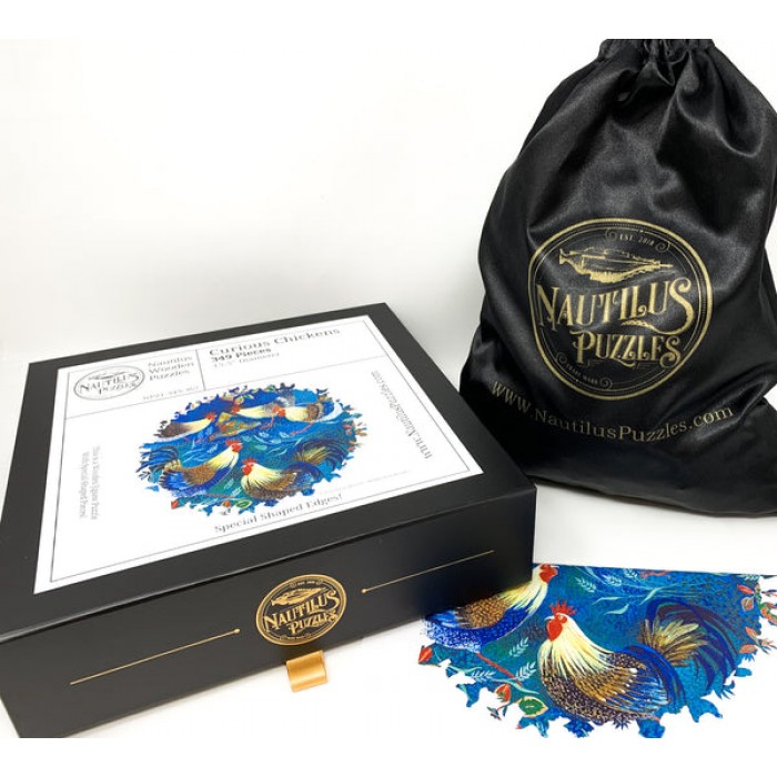 The perfect gift for wooden jigsaw puzzlers, and chicken lovers, this traditional adult wooden jigsaw puzzle can be done time and again. Our wooden jigsaw puzzle artists have included many chicken and hen house shaped whimsy puzzle pieces that match the subject of the painting, and we have integrated them in ways that will delight and surprise you as you put the wooden jigsaw puzzle together.