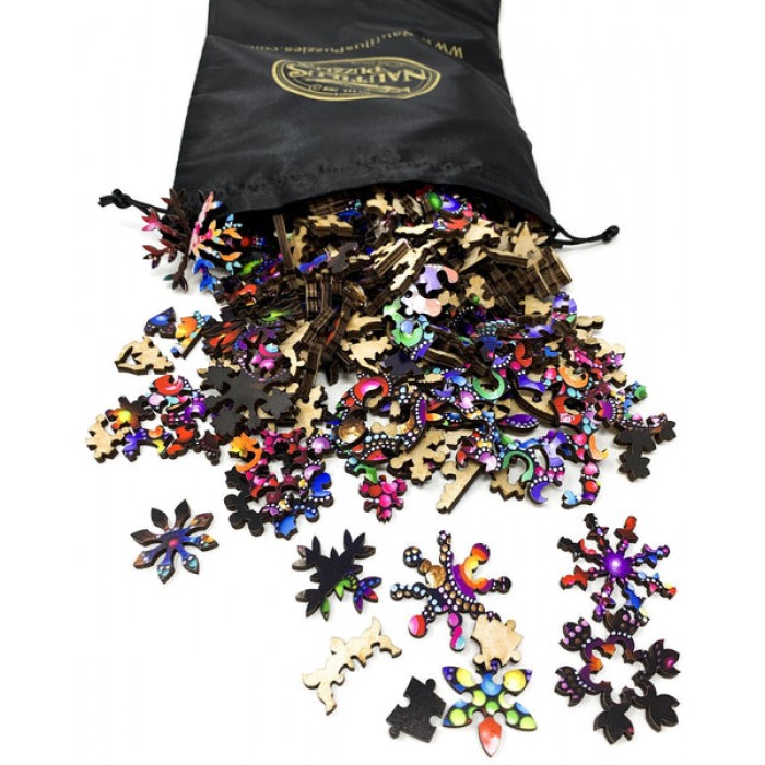 The perfect gift for wooden jigsaw puzzlers, this traditional adult wooden jigsaw puzzle can be done time and again. Our wooden jigsaw puzzle artists have included many shaped whimsy puzzle pieces that match the subject of the painting, and we have integrated them in ways that will delight and surprise you as you put the puzzle together.