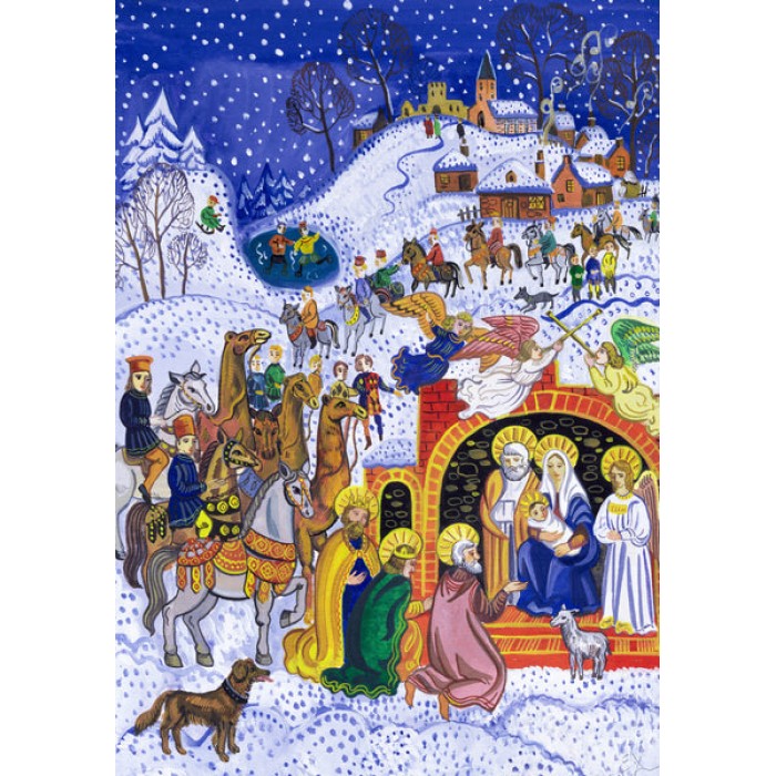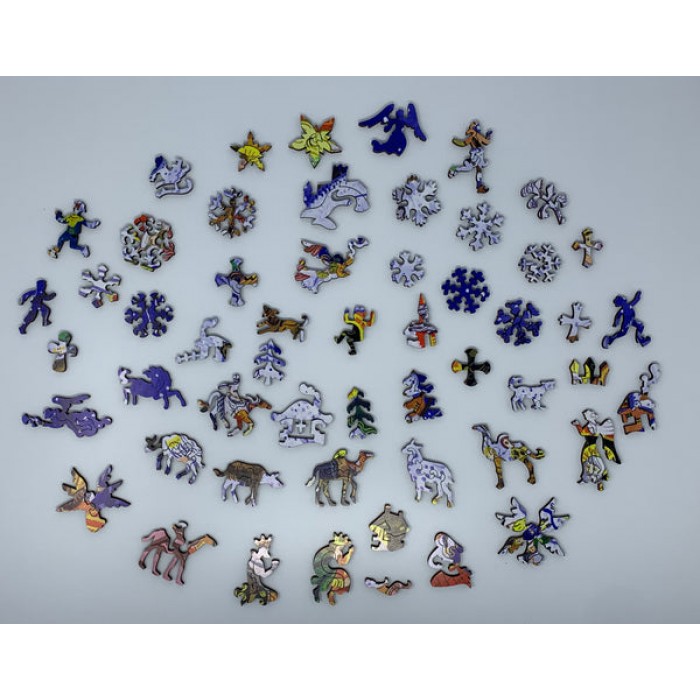 The perfect gift for Wooden Christmas jigsaw puzzlers, fine art enthusiasts, and Nativity fans this traditional adult wooden Christmas jigsaw puzzle can be done time and again. Our wooden Christmas jigsaw puzzle artists have included many shaped wooden Christmas jigsaw puzzle whimsy pieces that match the theme of the painting, and we have integrated them in ways that will delight and surprise you as you put the wooden Christmas jigsaw together.