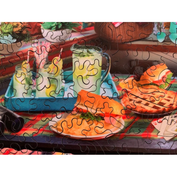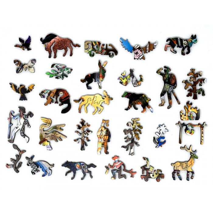 Our puzzle artists have included many camping and wildlife themed whimsy wooden jigsaw puzzle pieces that match the subject of the image, and we have integrated them in ways that will delight and surprise you as you put the wooden jigsaw puzzle together.