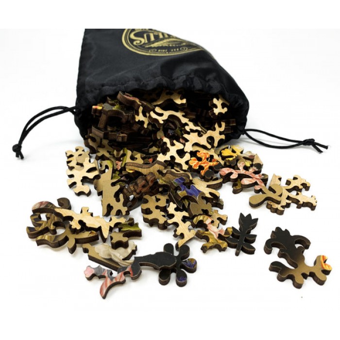 The perfect gift for wooden jigsaw puzzlers and fans of floral and still life paintings, this traditional adult wooden jigsaw puzzle can be done time and again. Our wooden jigsaw puzzle artists have included many floral-themed whimsy puzzle pieces that match the subject of the painting, and we have integrated them in ways that will delight and surprise you as you put the wooden jigsaw puzzle together.