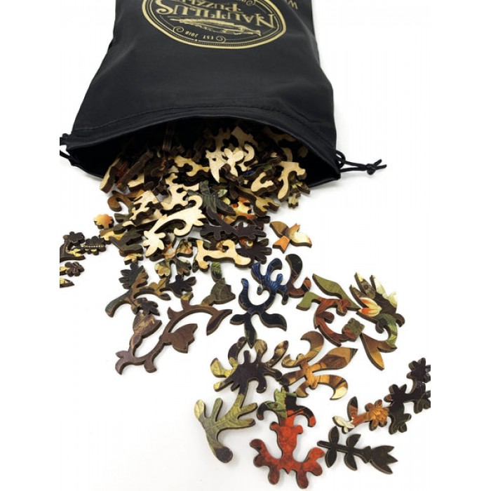 The perfect gift for wooden jigsaw puzzlers and fans of floral and still life paintings, this traditional adult wooden jigsaw puzzle can be done time and again. Our puzzle artists have included many floral-themed whimsy puzzle pieces that match the subject of the painting, and we have integrated them in ways that will delight and surprise you as you put the wooden jigsaw puzzle