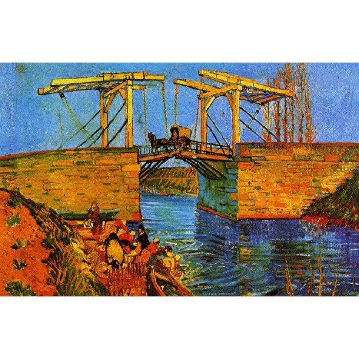 The Langlois Bridge at Arles is the subject of four oil paintings, one watercolor, and four drawings by Vincent Van Gogh, made in 1888 during his time in Arles, France. Van Gogh was influenced by Japanese Woodblocks and used contrasting colors, such as blue and yellow, bring a vibrancy to the works. The drawbridge reminded him of his homeland canals in the Netherlands. The reconstructed Langlois Bridge in Arles is named Pont Van-Gogh in his honor.