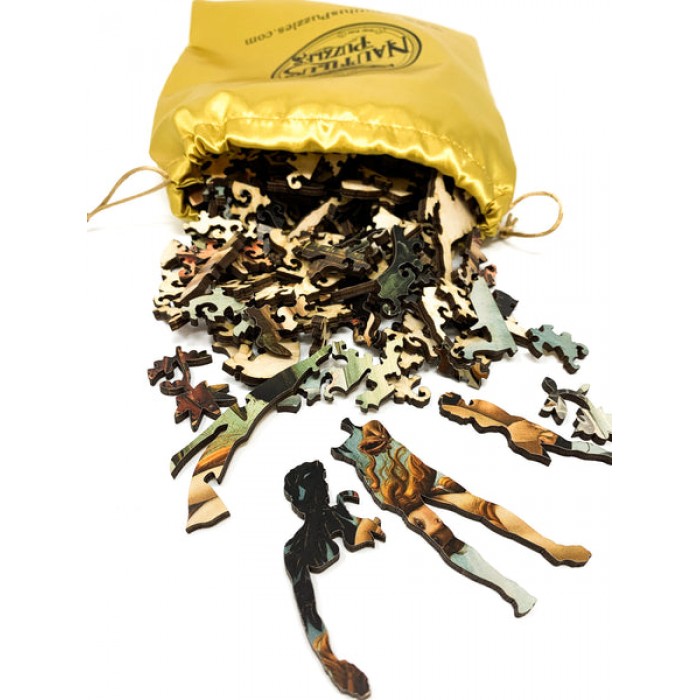 The perfect gift for wooden jigsaw puzzlers and classical fine art enthusiasts, this traditional adult wooden jigsaw puzzle can be done time and again. Our wooden jigsaw puzzle artists have included many Renaissance-themed shaped whimsy puzzle pieces that match the subject of the painting, and we have integrated them in ways that will delight and surprise you as you put the puzzle together.