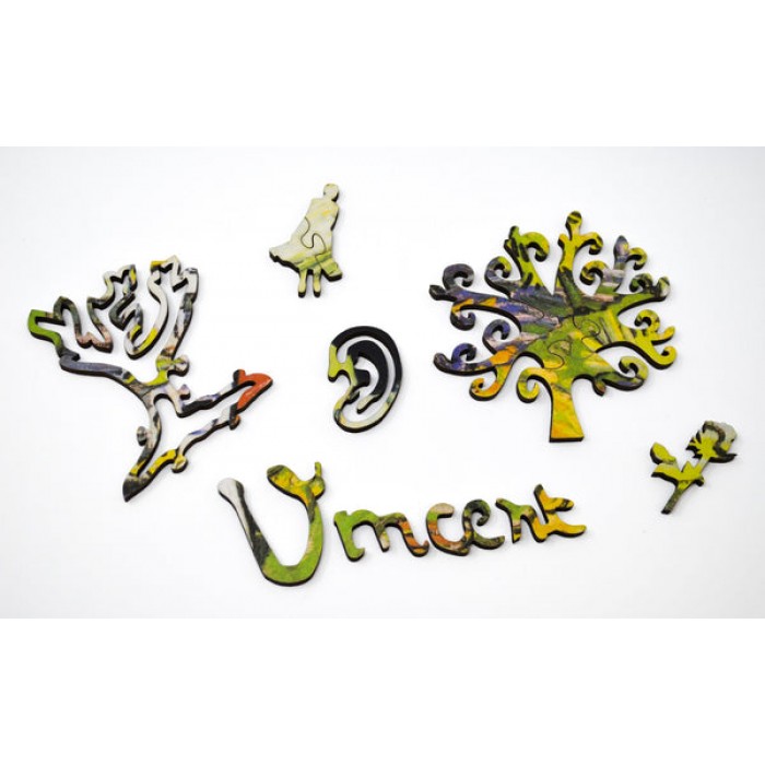 The perfect gift for wooden jigsaw puzzlers, fine art and Impressionist Art enthusiasts, and Vincent Van Gogh fans, this traditional adult jigsaw can be done time and again. Our wooden jigsaw puzzle artists have included many shaped whimsy puzzle pieces that match the theme of the painting, and we have integrated them in ways that will delight and surprise you as you put the wooden jigsaw puzzle together.