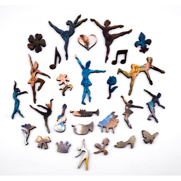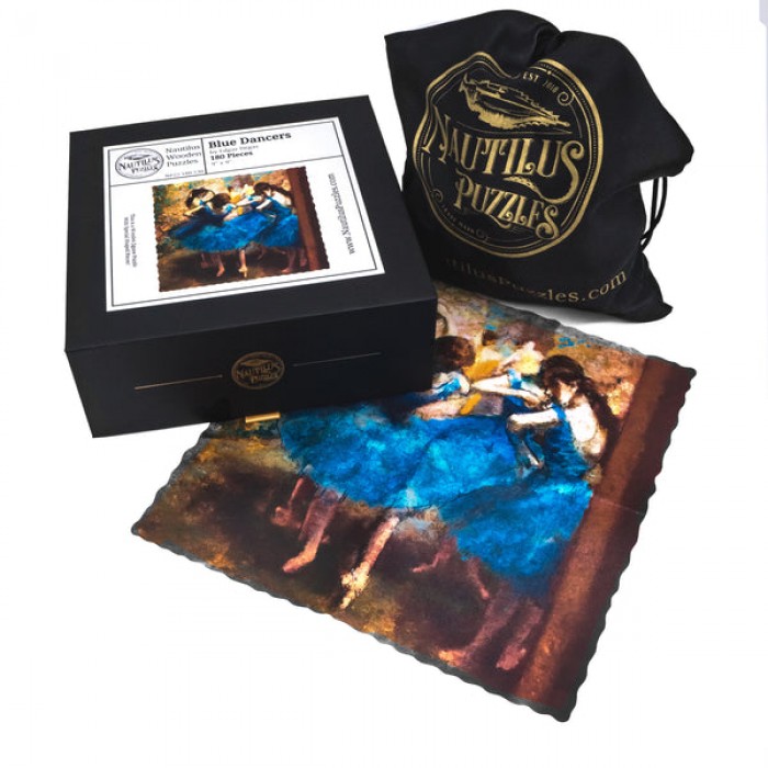 The perfect gift for wooden jigsaw puzzlers, fine art and Impressionist enthusiasts, and Edgar Degas fans, this traditional adult wooden jigsaw puzzle can be done time and again. Our wooden jigsaw puzzle artists have included many dance shaped whimsy puzzle pieces that match the theme of the painting, and we have integrated them in ways that will delight and surprise you as you put the wooden jigsaw puzzle together.
