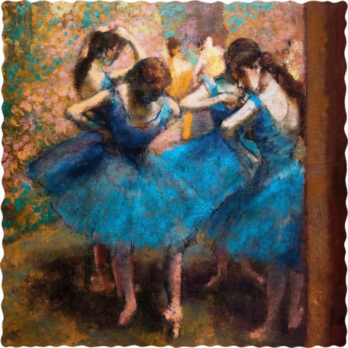 Blue Dancers, sometimes called Dancers in Blue, is one of the most famous Edgar Degas ballet paintings and was introduced towards the end of his career. It was completed in 1895 and is a treasure among the 200+ paintings that Edgar Degas completed.