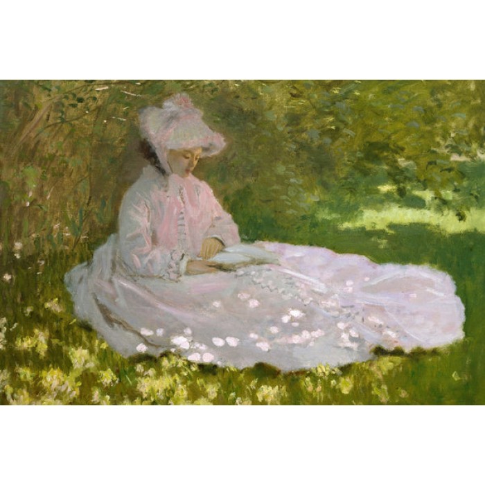For Springtime (1872) Claude Monet used his first wife, Camille Doncieux, as the model. Before Camille and Claude were married in 1870, she served as a model for not just Monet, but also Auguste Renoir and Édouard Manet.