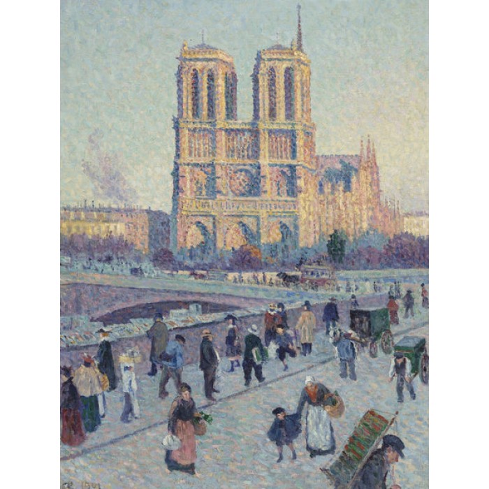 Maximilien Luce was part of the Neo-Impressionist movement between 1887 and 1897. He used separate dabs of color, a technique called divisionism, for this painting, which was one of ten he painted of Notre Dame de Paris. It was painted (1901) while Luce was moving from his Neo-Impressionist period to his later Populist period.