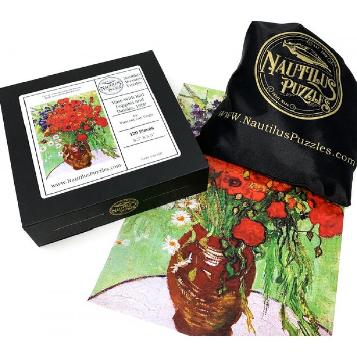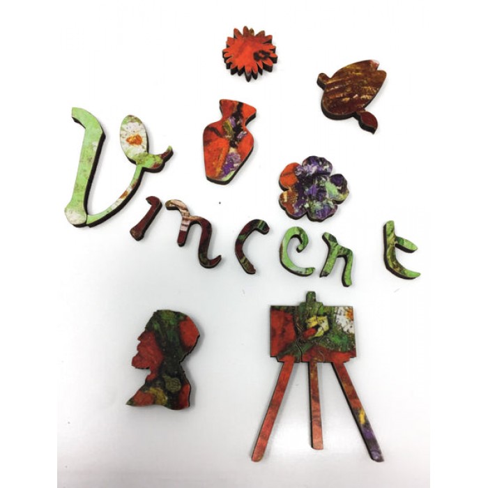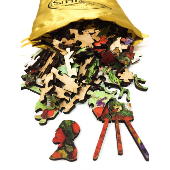 The perfect gift for wooden jigsaw puzzlers, fine art enthusiasts, and flower lovers, this traditional adult jigsaw can be done time and again. Our wooden jigsaw puzzle artists have included many van Gogh-themed shaped whimsy puzzle pieces that match the subject of the image and we have integrated them in ways that will delight and surprise you as you put the wooden jigsaw puzzle together.