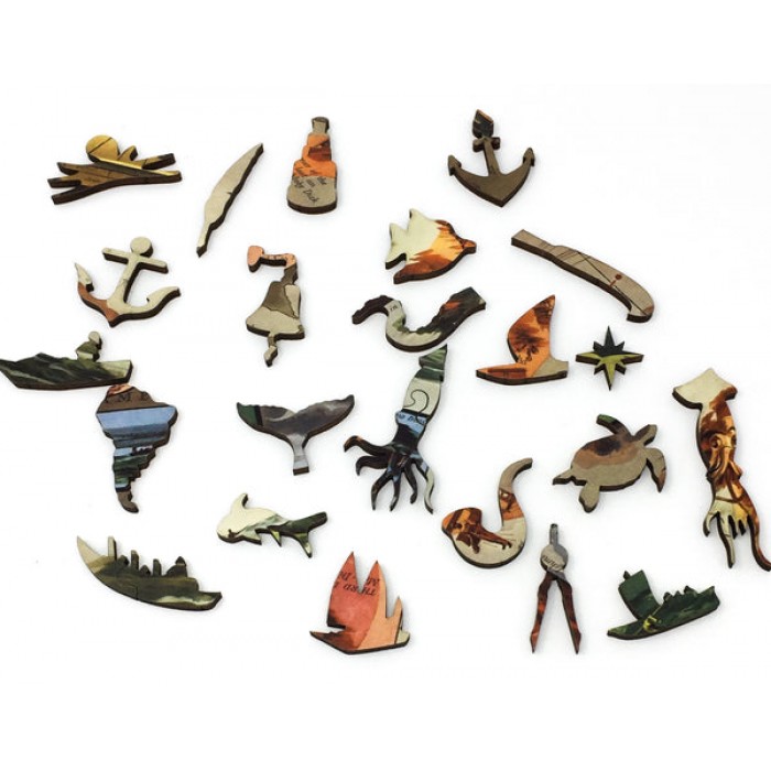 The perfect gift for wooden jigsaw puzzlers, literary enthusiasts and nautical fans, this traditional adult wooden jigsaw puzzlecan be done time and again. Our puzzle artists have included many shaped whimsy pieces that match the theme of the artwork, and we have integrated them in ways that will delight and surprise you as you put the wooden jigsaw puzzle together.