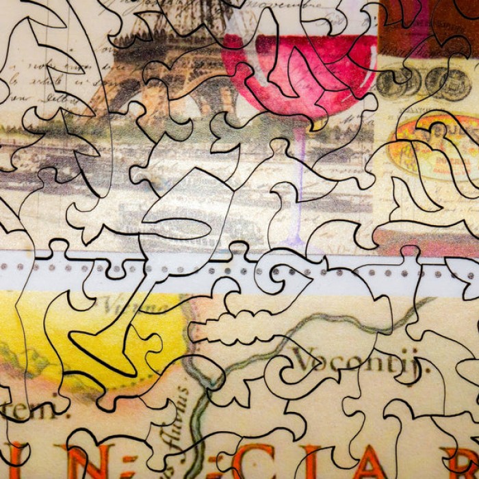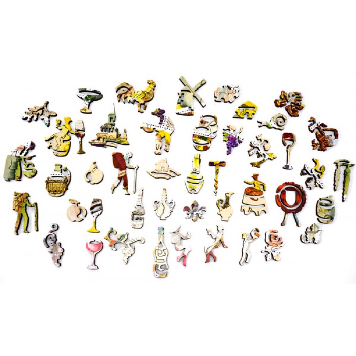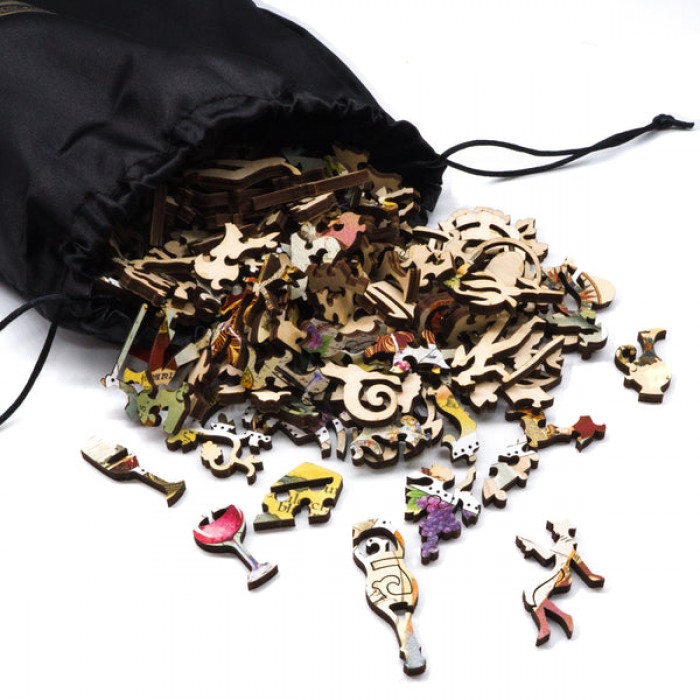 The perfect gift for wine lovers and wooden jigsaw puzzle fans, this traditional adult wooden jigsaw puzzle can be done time and again. Our wooden jigsaw puzzle artists have included many wine shaped whimsy wooden jigsaw puzzle pieces that match the subject of the painting, and we have integrated them in ways that will delight and surprise you as you put the autumn wooden jigsaw puzzle together.