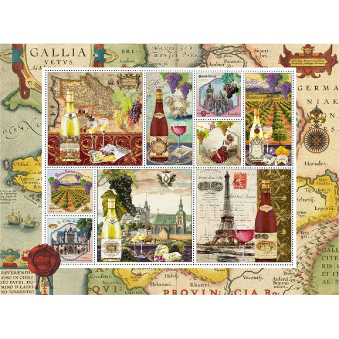 This colorful map image from Finchley Paper Arts features some of the best wine-producing regions of Europe.