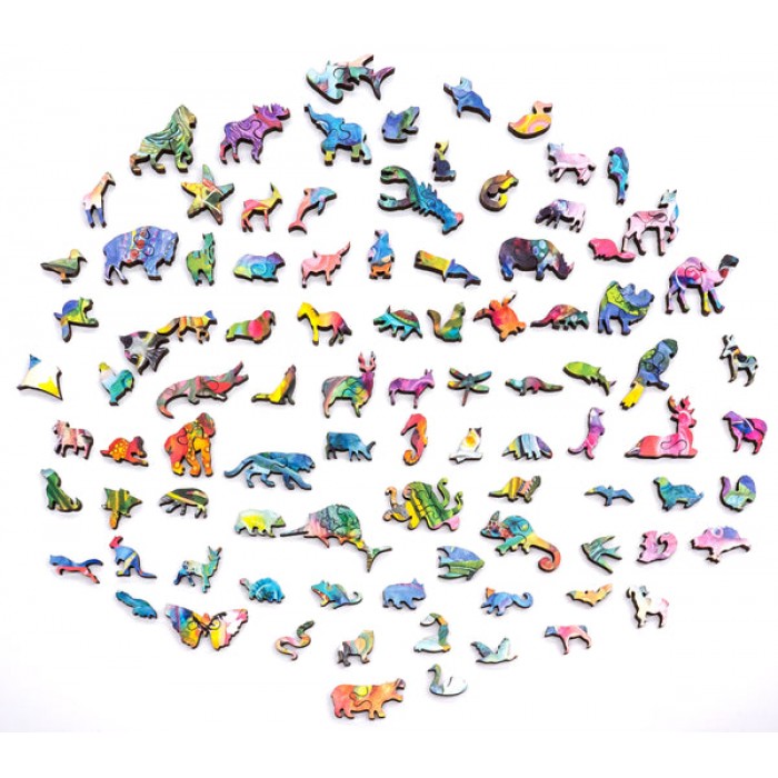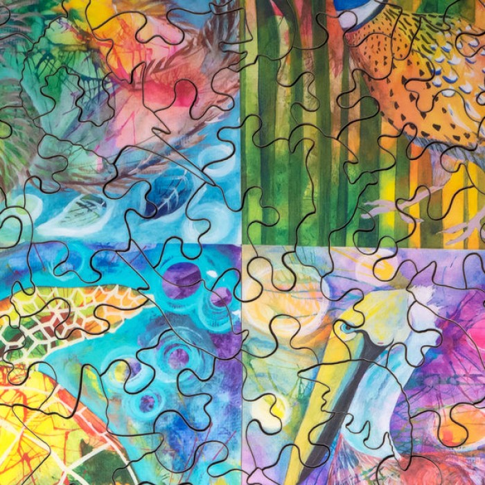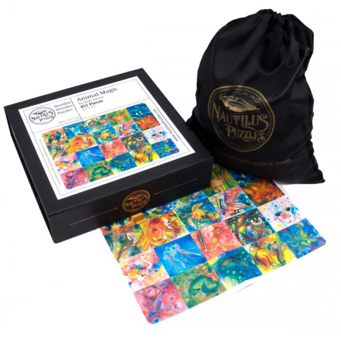 The perfect gift for wooden jigsaw puzzle fans and animal lovers, this traditional adult wooden jigsaw puzzle can be done time and again. Our wooden jigsaw puzzle artists have included many shaped whimsy wooden jigsaw puzzle pieces that match the subject of the painting, and we have integrated them in ways that will delight and surprise you as you put the wooden jigsaw puzzle together.