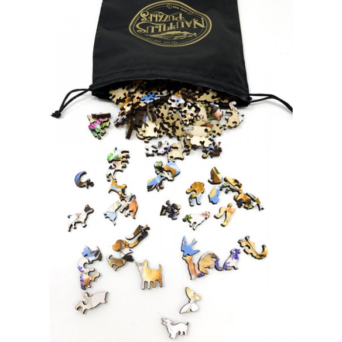 The perfect gift for wooden jigsaw puzzlers and pet lovers, this traditional adult wooden jigsaw puzzle can be done time and again. Our puzzle artists have included many shaped whimsy puzzle pieces that match the subject of the image, and we have integrated them in ways that will delight and surprise you as you put the wooden jigsaw puzzle together.