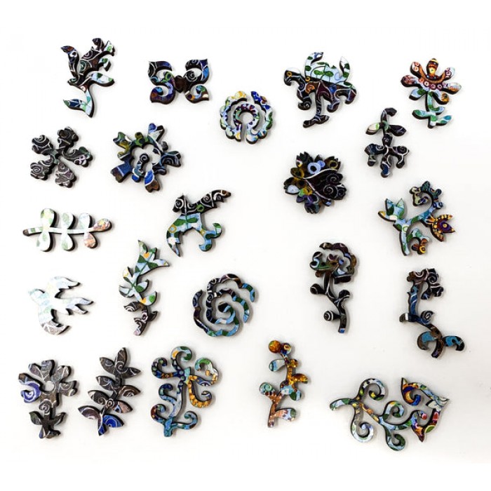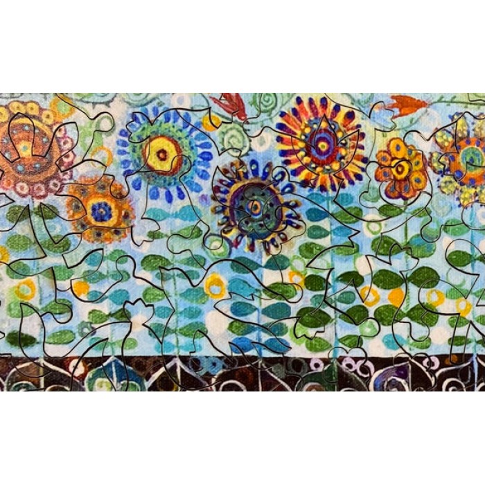 The perfect gift for wooden jigsaw puzzlers and floral aficionados, this traditional adult wooden jigsaw puzzle can be done time and again. Our wooden jigsaw puzzle artists have included many shaped whimsy puzzle pieces that match the theme of the image, and we have integrated them in ways that will delight and surprise you as you put the puzzle together.
