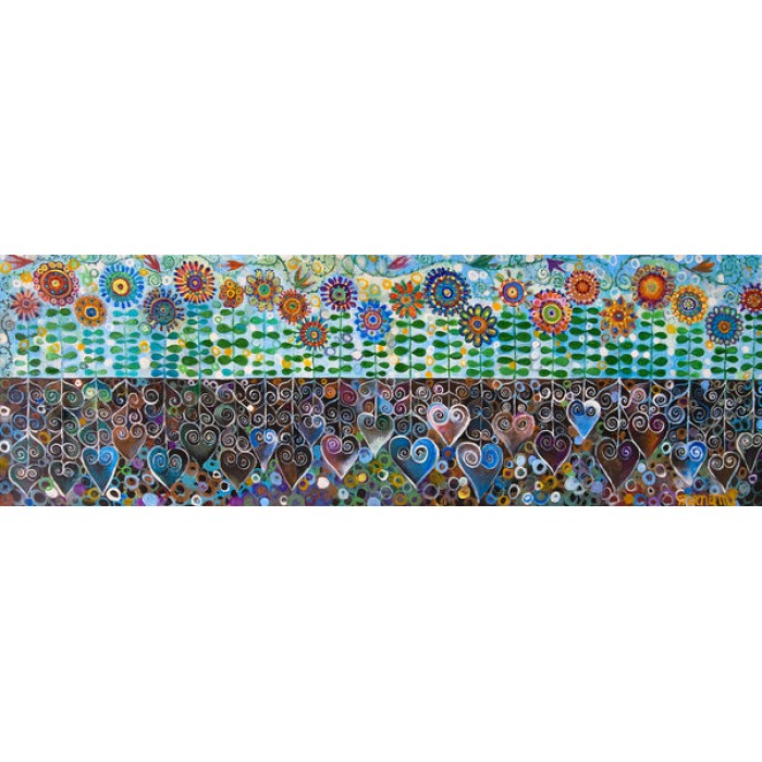 This beautiful wooden jigsaw puzzle features the hearts that lie below our flower's ground. Our artist Manami Lingerfelt creates stunning images with a variety of colors to keep the admirer in awe of her pieces. In this image, there is always something new to perceive and admire.