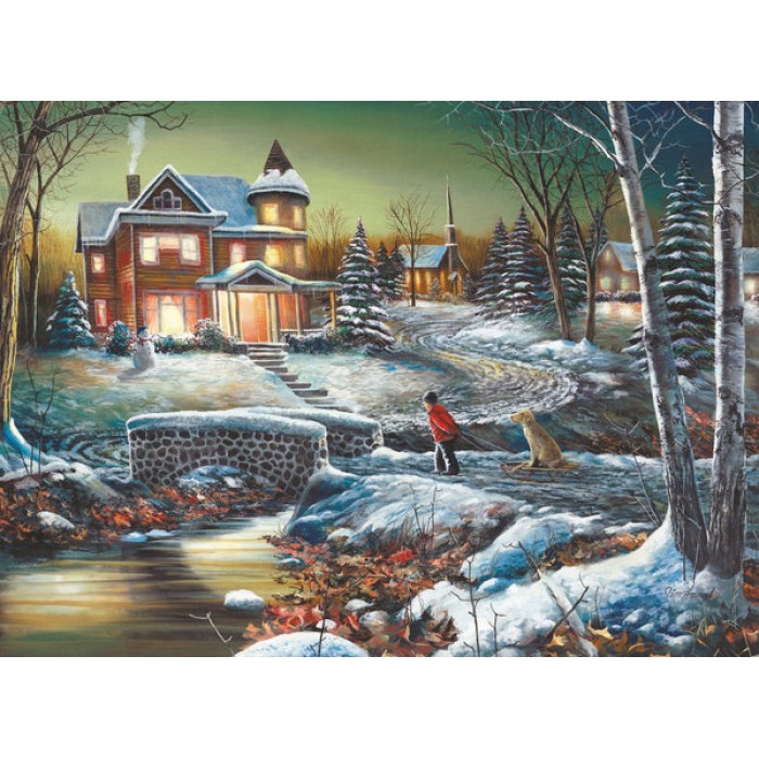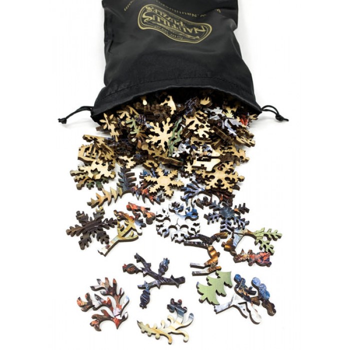 This wooden jigsaw puzzle reminds us of coming home on Christmas after a full day of snowy activities. Knowing there's a hot cup of chocolate waiting for us, arriving home was the best part of the day.