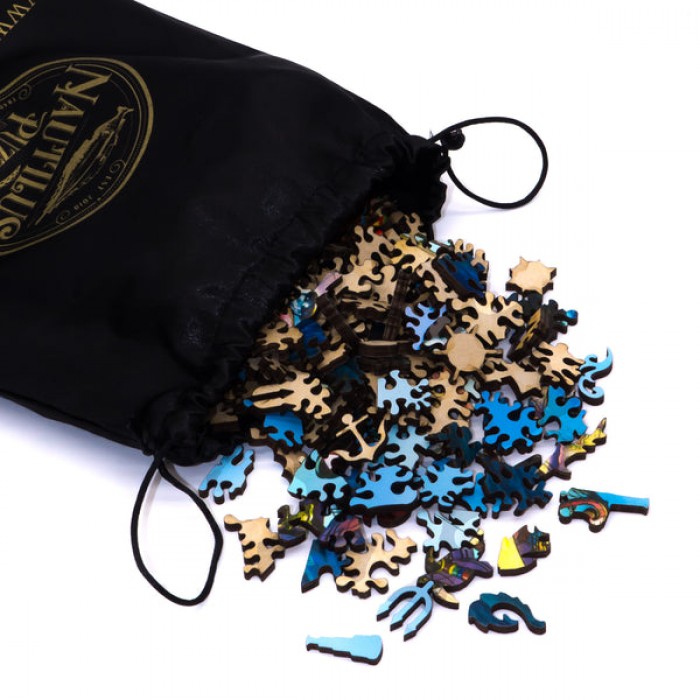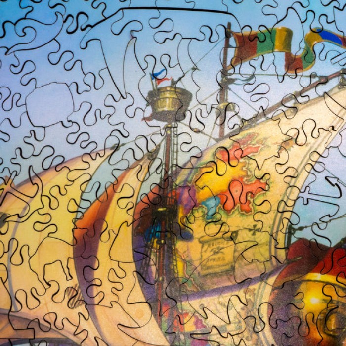 This wooden jigsaw puzzle is the perfect gift for puzzlers, fantasy enthusiasts, and nautical puzzle fans. This traditional adult wooden jigsaw puzzle can be done time and again. Our wooden jigsaw puzzle artists have included many nautically inspired whimsy wooden jigsaw puzzle pieces that match the theme of the painting and we have integrated them in ways that will delight and surprise as you put the wooden jigsaw puzzle together.