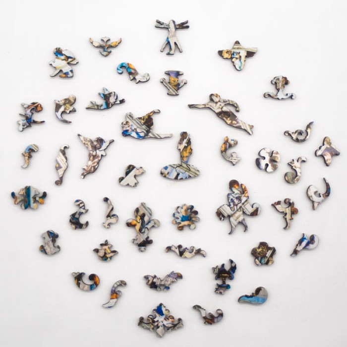 The perfect gift for art lovers, and wooden jigsaw puzzlers, this traditional adult wooden jigsaw puzzle can be done time and again. Our wooden jigsaw puzzle artists have included many Easter and Christian-inspired shaped whimsy puzzle pieces, and we have integrated them in ways that will delight and surprise you as you put the wooden jigsaw puzzle together.