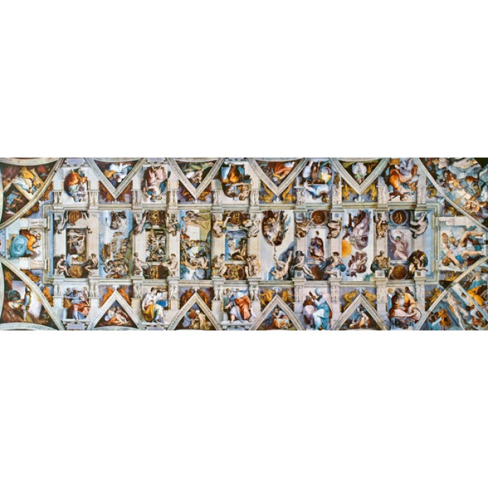 The centerpiece is the fresco of the Creation of Adam, where God breathes life into Adam. This is one of the most reproduced art images in the world.