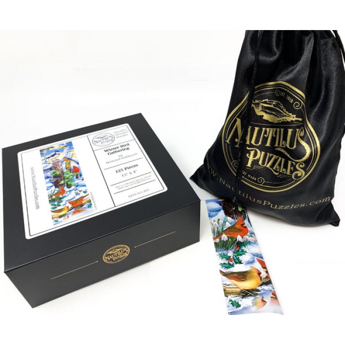 The perfect gift for wooden jigsaw puzzlers and bird lovers this traditional adult wooden jigsaw puzzle can be done time and again. Our jigsaw puzzle artists have included many shaped whimsy puzzle pieces that match the theme of the painting, and we have integrated them in ways that will delight and surprise you as you put the wooden jigsaw puzzle together.