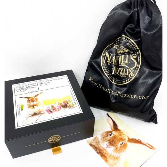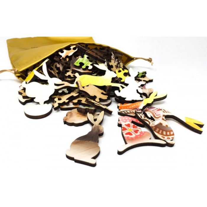 The perfect Easter gift for jigsaw puzzlers, this traditional adult Easter wooden jigsaw puzzle can be done time and again. Our puzzle artists have included many Easter themed shaped whimsy puzzle pieces that match the subject of the image, and we have integrated them in ways that will delight and surprise you as you put the Easter wooden jigsaw puzzle
