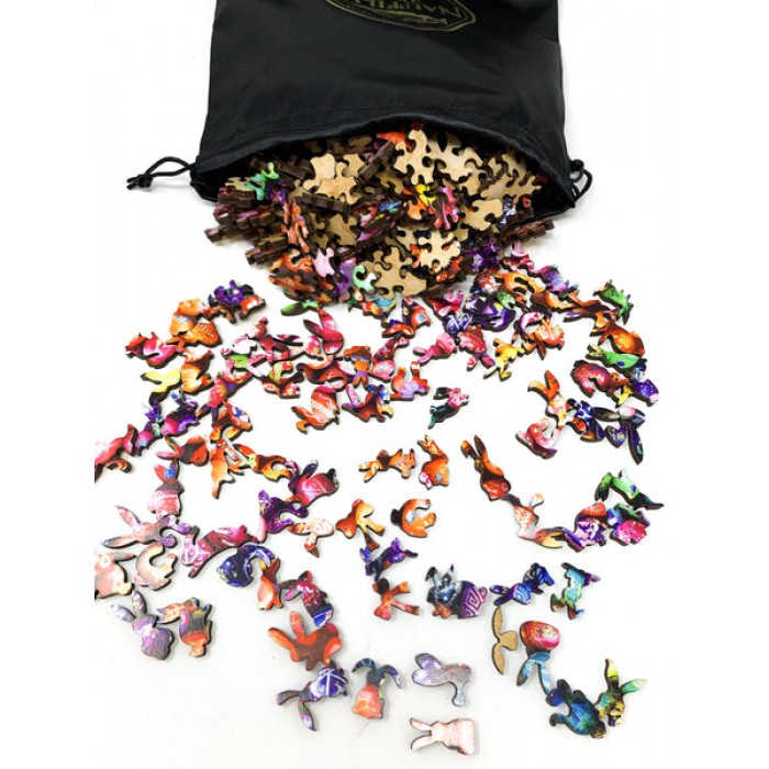 The perfect gift or for any Easter wooden jigsaw puzzler or Easter lover, this traditional Easter wooden jigsaw puzzle can be done time and again. Our Easter wooden jigsaw puzzle artists have included many Easter Bunny and Spring-inspired shaped whimsy Easter wooden jigsaw puzzle pieces that match the theme of the image, and we have integrated them in ways that will delight and surprise you as you put the Easter wooden jigsaw puzzle together.
