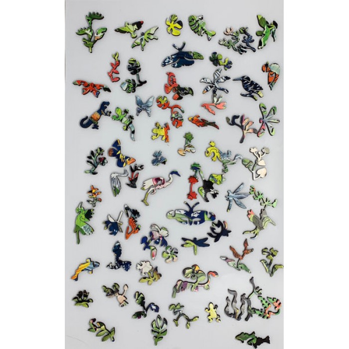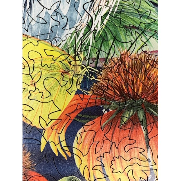 The perfect gift for wooden jigsaw puzzlers and flower and bird lovers, this traditional adult wooden jigsaw puzzle can be done time and again. Our wooden jigsaw puzzle artists have included many bird and butterfly shaped whimsy wooden jigsaw puzzle pieces that match the subject of the image, and we have integrated them in ways that will delight and surprise you as you put the wooden jigsaw puzzle together.