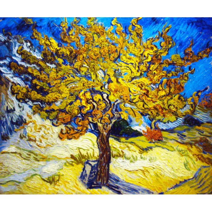 Vincent Van Gogh's Mulberry Tree was his favorite painting he painted from his asylum. He recalls enjoying the autumn season in the backyard, especially this Mulberry Tree.