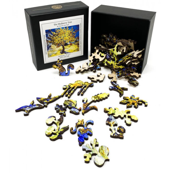 The perfect gift for mini wooden jigsaw puzzlers, fine art and Impressionist Art enthusiasts, and Vincent Van Gogh fans, this traditional adult mini wooden jigsaw puzzle can be done time and again. Our mini wooden jigsaw puzzle artists have included many shaped whimsy puzzle pieces that match the theme of the painting, and we have integrated them in ways that will delight and surprise you as you put the mini wooden jigsaw puzzle together.