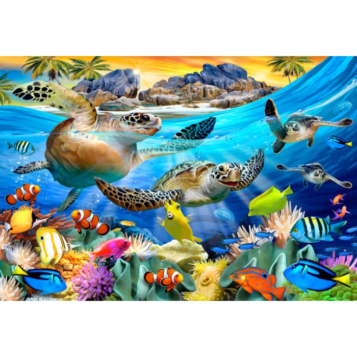 The perfect gift or stocking-stuffer for any jigsaw puzzler, this traditional mini wooden turtle jigsaw puzzle can be done time and again. Our puzzle artists have included many shaped whimsy puzzle pieces that match the theme of the painting, and we have integrated them in ways that will delight and surprise you as you put the mini wooden turtle jigsaw puzzle together.